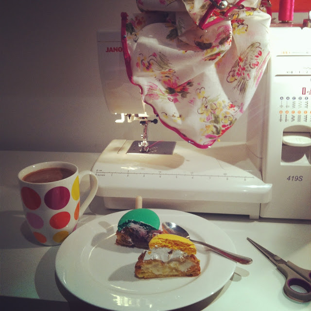 It's so lovely to have a houseguest that makes hot milo and serves up dessert while I'm sewing!